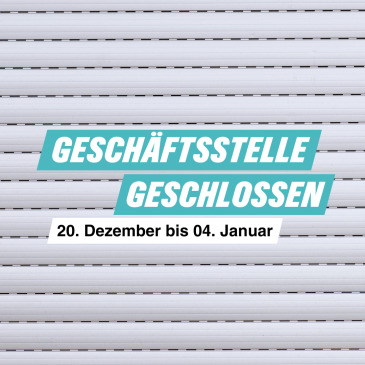 Von 20.12.2025 bis 04.01.2026 gönnen wir uns eine kleine Auszeit. In diesem Zeitraum bleibt unsere Geschäftsstelle geschlossen.